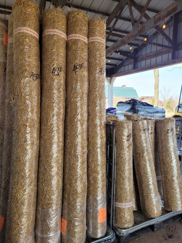 Either choose from a 8’x112′ (aprox 90 sq ft of total coverage)or 4’x112′ single net erosion control. Ideal for newly seeded areas on a pitched grade or to help prevent rapid evaporation. When purchasing don’t forget your staples! (100 ct per 8’x112′ roll)